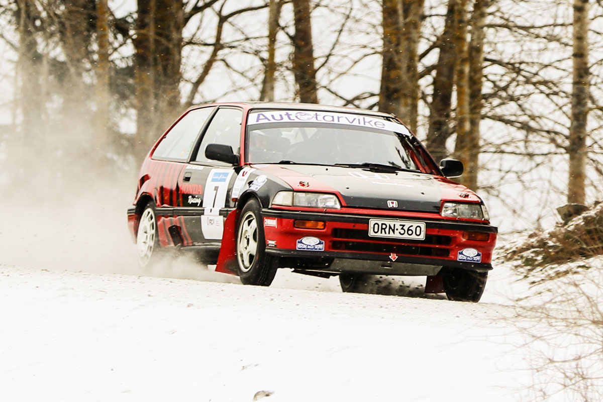 Viime vuoden pronssimitalisti Risto Tiinus aloitti kauden Civicillä ja jatkoi Avengerilla. Tänä vuonna hän kisailee 1600 Escortilla. Civiciä puolestaan käskyttää Ilpo Suorela. 📸 Timo Honkala