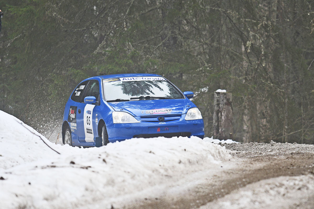 – Kyllä oli haastava päivä kelin suhteen. Jukojärvellä (EK3) kynsimme pitkään ojassa, mutta onneksi auto nousi takaisin tielle, selvitti Lauronen.