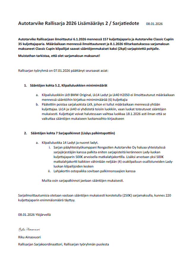 9.5.2026 AUTOHUOLTO.COM RALLI, SASTAMALA