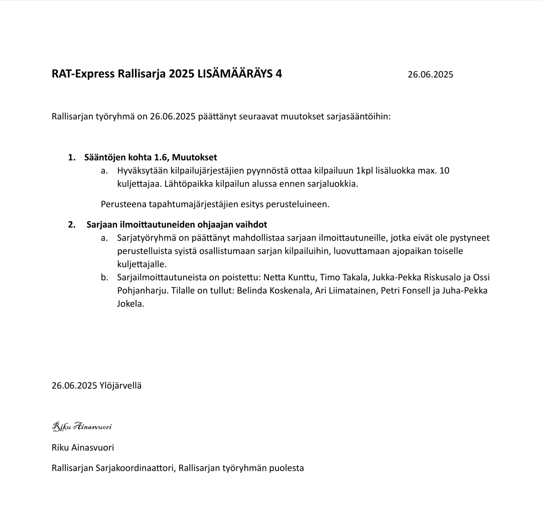 • AUTOTARVIKE RALLISARJAN 2026 SÄÄNNÖT JULKAISTU JA ILMOITTAUTUMINEN AVATTU! 30.9.2025