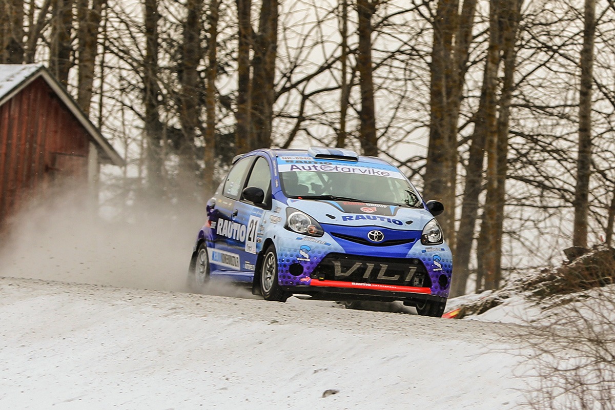 Virheittä ajanut Vili Viitaniemi (Toyota Aygo) oli Keuruun tapaan kakkonen. Laukaalainen piti nopeista ja teknisistä teistä. Kolmas oli Max Teinilä (Toyota Aygo). Kittilän Sirkasta kotoisin olevalla Maxilla oli edestakainen kisamatka peräti 1800 kilometriä.