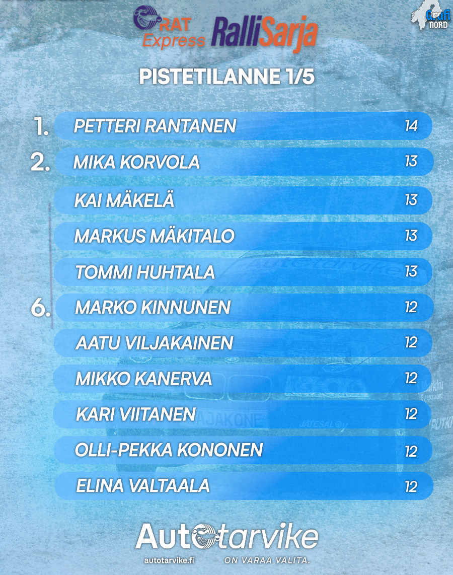 Petteri Rantanen ja Aada Rantanen voittivat runsaslukuisimmaksi muodostuneen Senioreiden LK19-luokan, johon starttasi peräti 20 kilpailijaa. RAT Express Rallisarjassa pisteitä jaetaan menestyjille omien luokkien lähtijämäärän perusteella. Niinpä Rantanen pitää avauskisan jälkeen hallussa pistejohtoa.